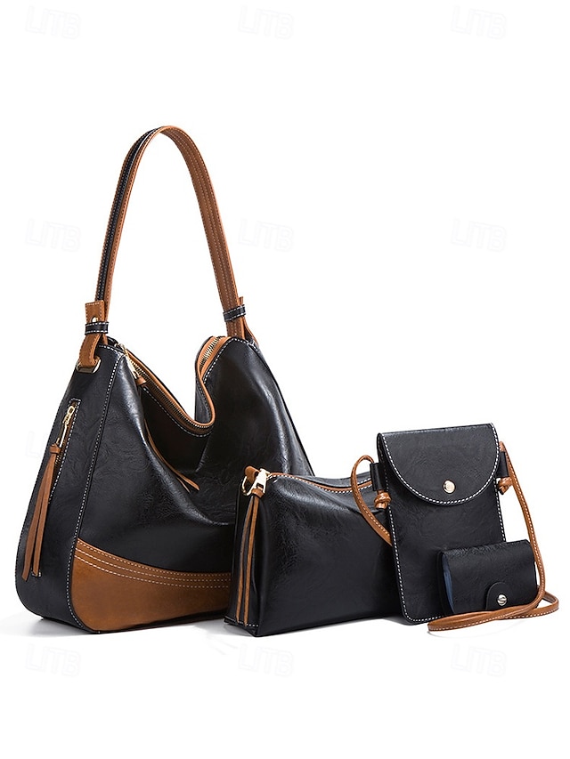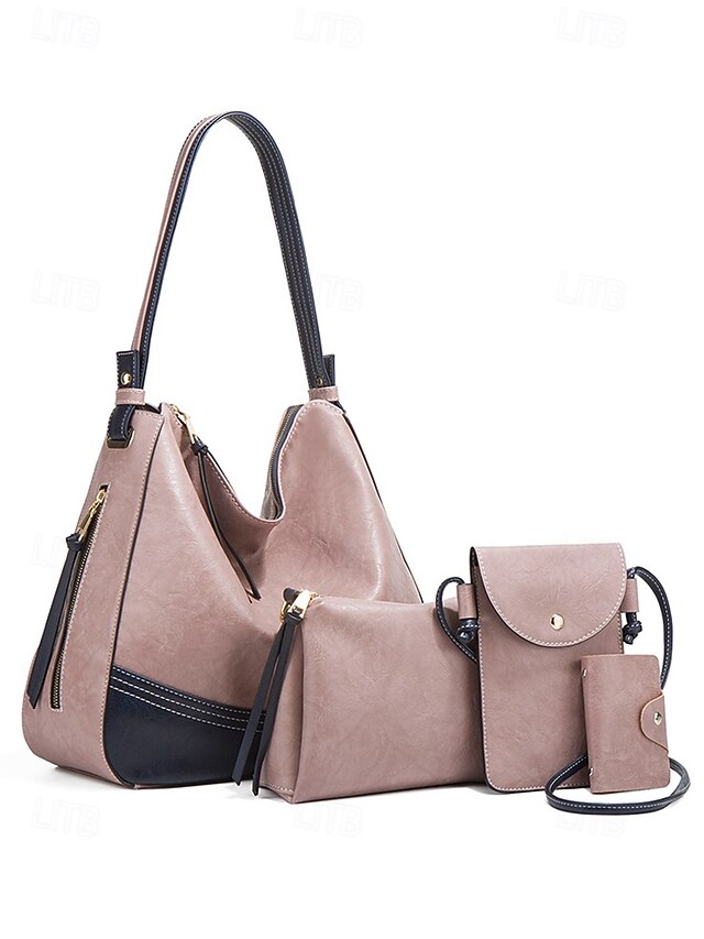 Gender: Women’s, Type: Coin Purse, Crossbody Bag, Shoulder Bags, Material: PU Leather, Quantity: 4 Pieces, Embellishment: Zipper, Tassel, Pattern: Patchwork, Solid Color, Detachable strap: Non-Detachable, Adjustable strap: Adjustable, Occasion: Office, Casual Daily, Width (cm): 13, Height (cm): 32, Length (cm): 33, Function: Large Capacity, Multi Carry, Category: Bag Set,