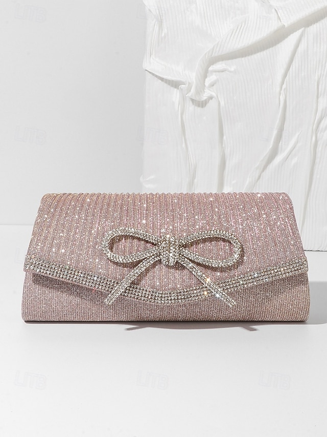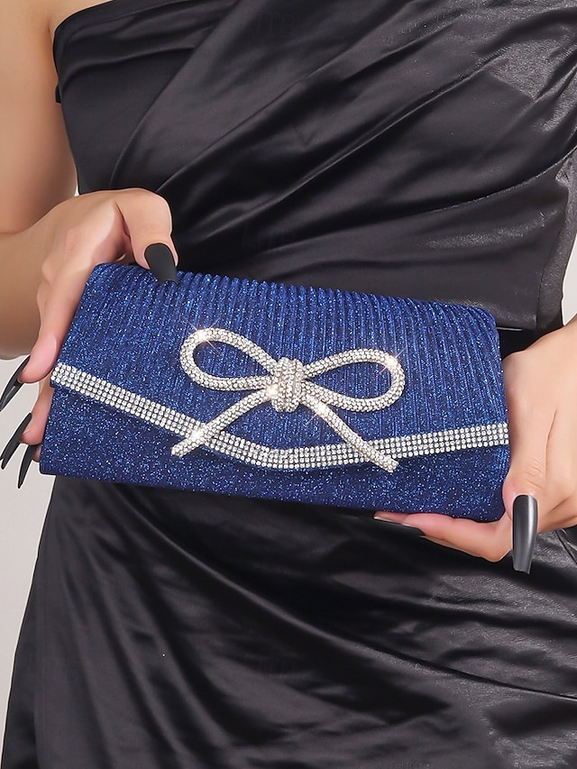 Gender: Women’s, Type: Shoulder Bags, Evening Bag, Material: Polyester, Embellishment: Rhinestone, Bowknot, Pattern: Solid Color, Occasion: Wedding Party, Party, Width (cm): 5, Height (cm): 10, Length (cm): 22, Function: Large Capacity, Multi Carry, Category: Clutch,