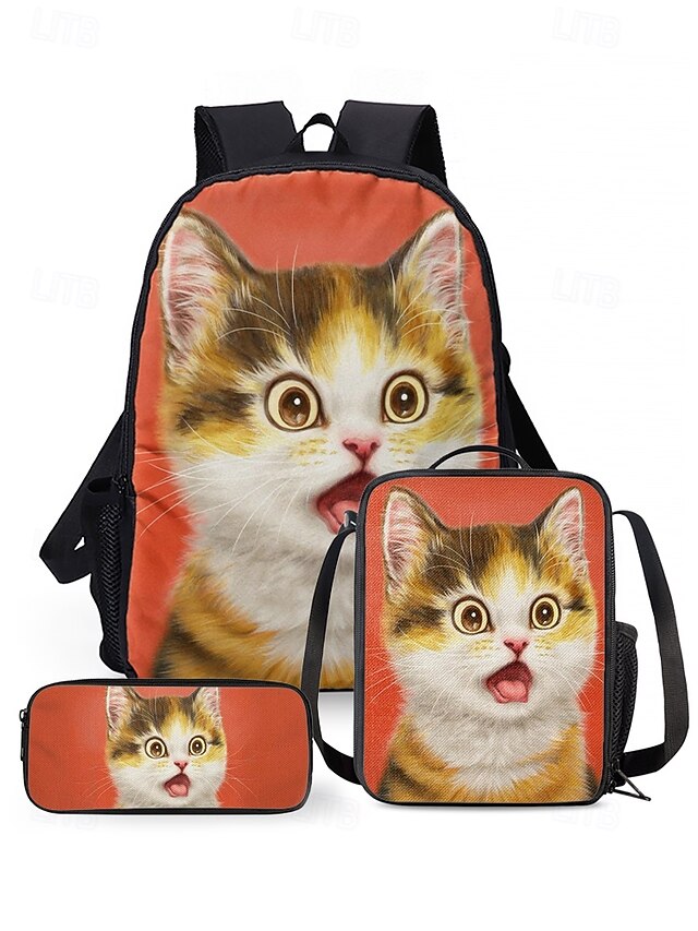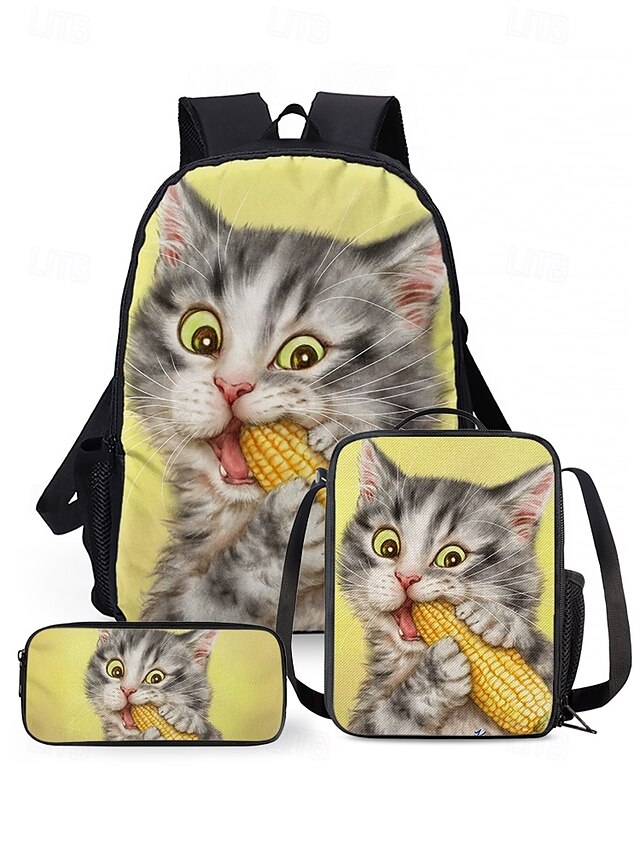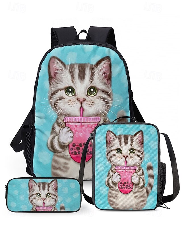 Kids 3-piece colorful cat backpack set (with insulated lunch bag