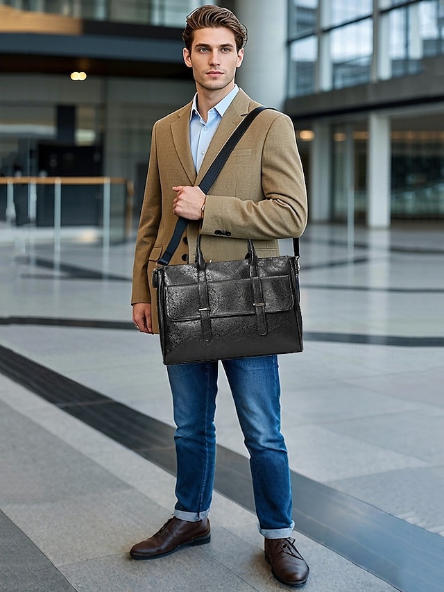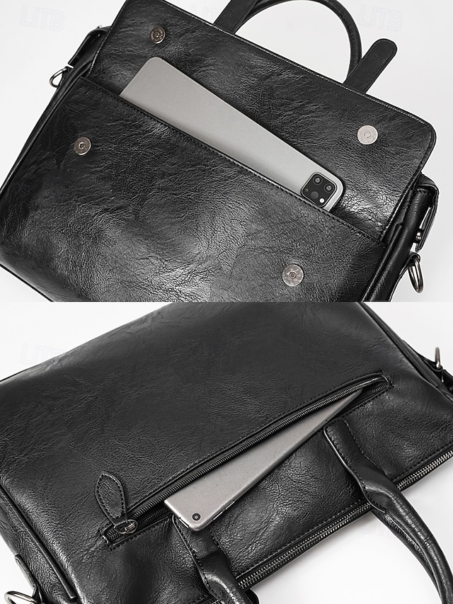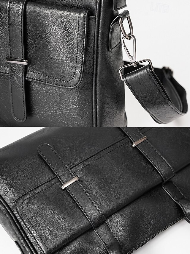 Gender: Men’s, Type: Satchel, Laptop Bag, Crossbody Bag, Material: PU Leather, Embellishment: Zipper, Pattern: Solid Color, Detachable strap: Detachable, Adjustable strap: Adjustable, Occasion: Office, Daily, Width (cm): 9, Height (cm): 30, Length (cm): 37, Function: Waterproof, Large Capacity, Category: Briefcase,