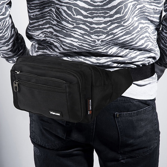 Men’s Black Nylon Travel Fanny Pack, Multi – Pocket Waist