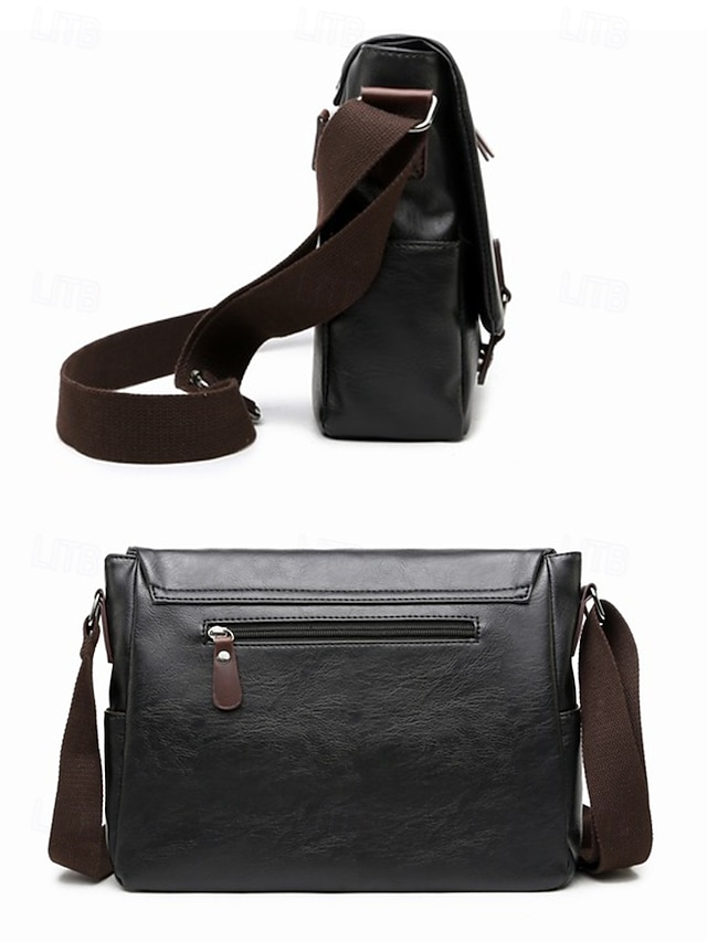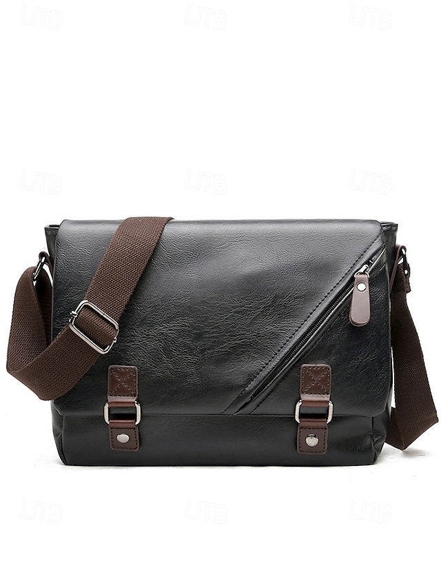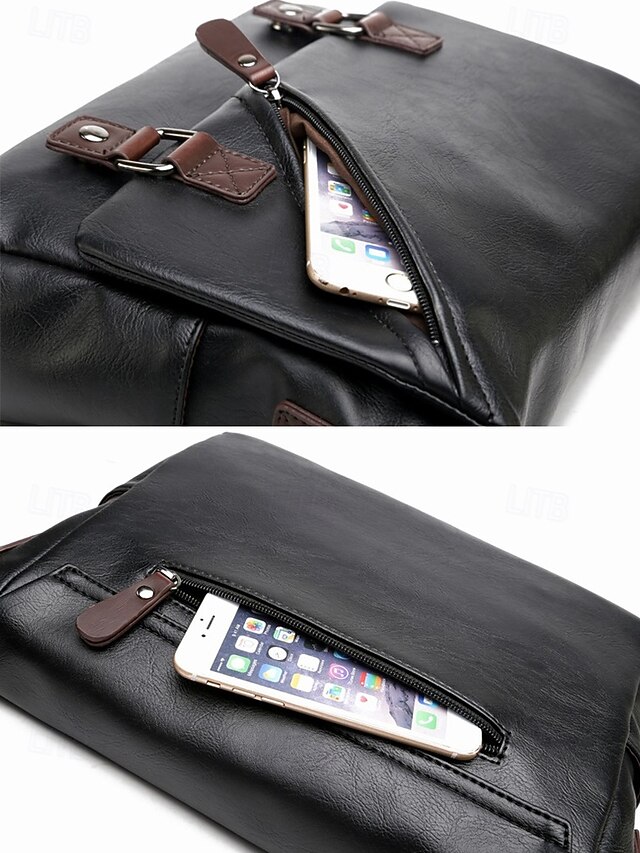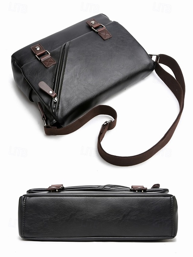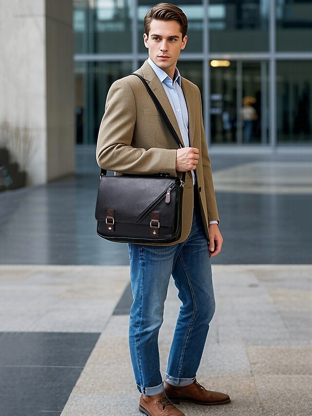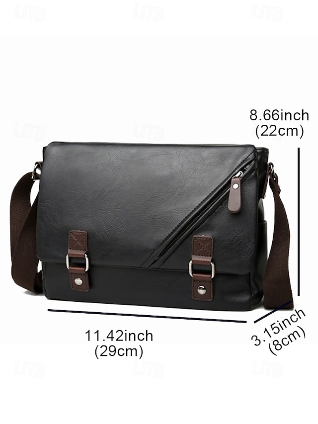 Gender: Men’s, Type: Satchel, Laptop Bag, Material: PU Leather, Embellishment: Zipper, Pattern: Solid Color, Detachable strap: Non-Detachable, Adjustable strap: Adjustable, Occasion: Office, Casual Daily, Width (cm): 8, Height (cm): 22, Length (cm): 29, Function: Waterproof, Large Capacity, Category: Crossbody Bag,