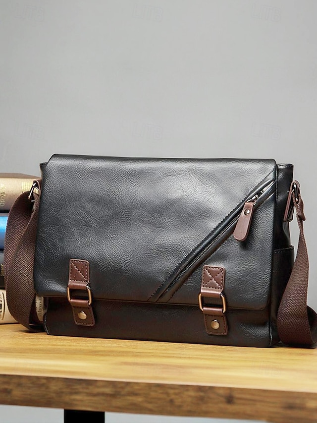 Men’s Faux Leather Messenger Bag – Vintage Business