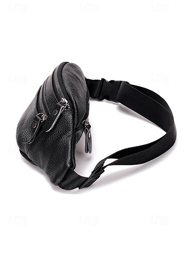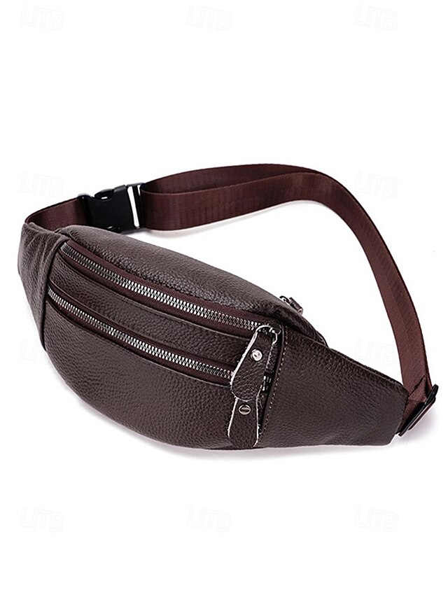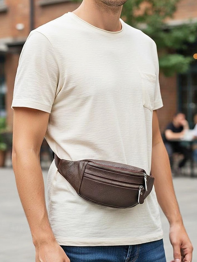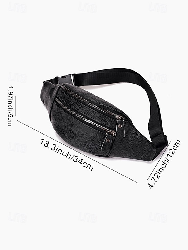 Gender: Men’s, Type: Fanny Pack, Chest Bag, Crossbody Bag, Material: Leather, Embellishment: Zipper, Multiple pockets, Pattern: Solid Color, Detachable strap: Non-Detachable, Adjustable strap: Adjustable, Occasion: Father’s Day, Outdoor, Casual Daily, Casual, Width (cm): 34, Height (cm): 12, Length (cm): 5, Function: Waterproof, Lightweight, Multi Carry, Category: Waist Bag,