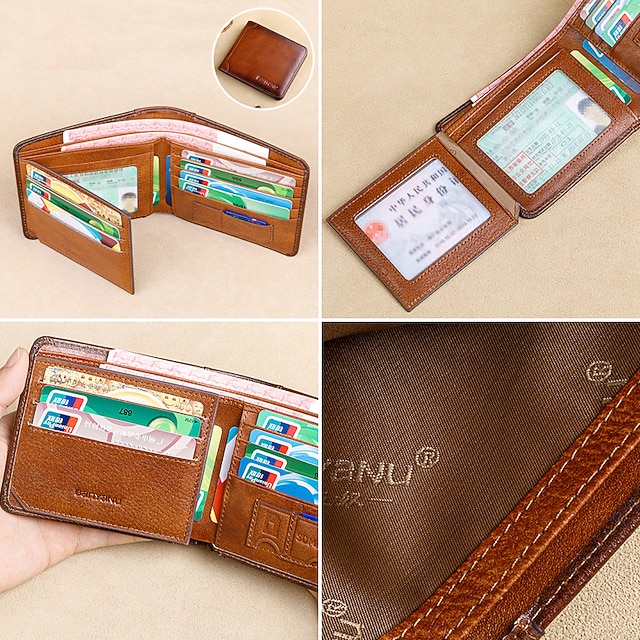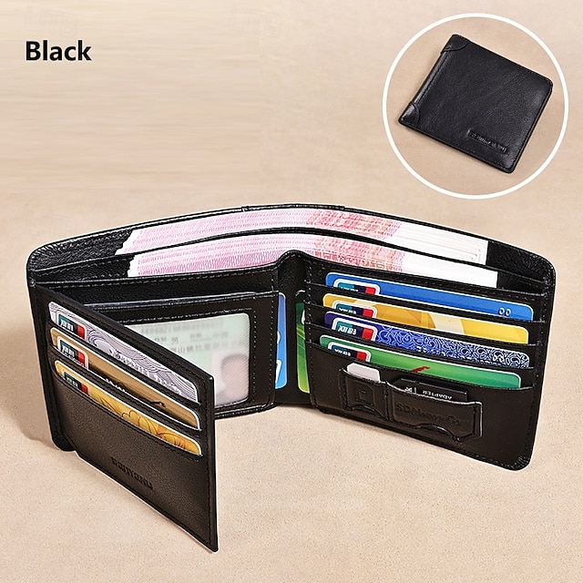 Gender: Men’s, Type: Credit Card Holder Wallet, Material: Leather, Pattern: Solid Color, Occasion: Shopping, Holiday, Daily, Outdoor, Width (cm): 1, Length (cm): 11, Height (cm): 10, Function: Waterproof, Lightweight, Large Capacity, Durable, RFID Blocking, Category: Wallet,