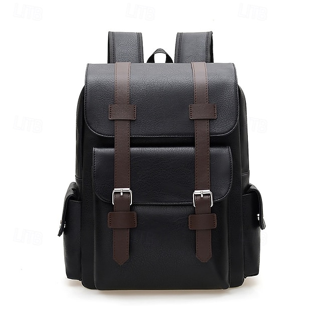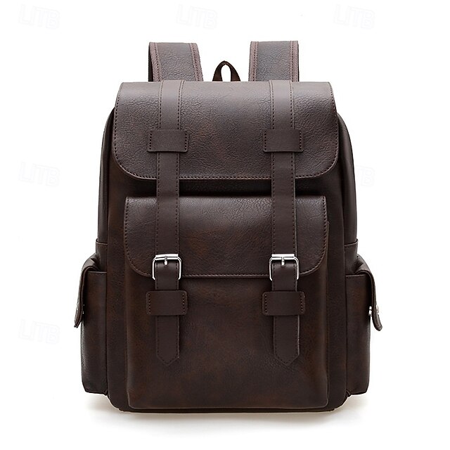 Men’s Vintage Faux Leather Backpack with Buckle Straps,
