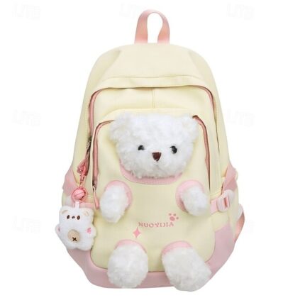 Girls’ Yellow and Pink School Backpack with Plush Teddy