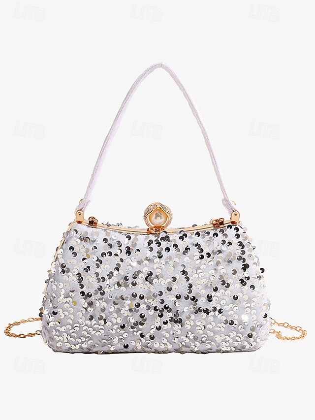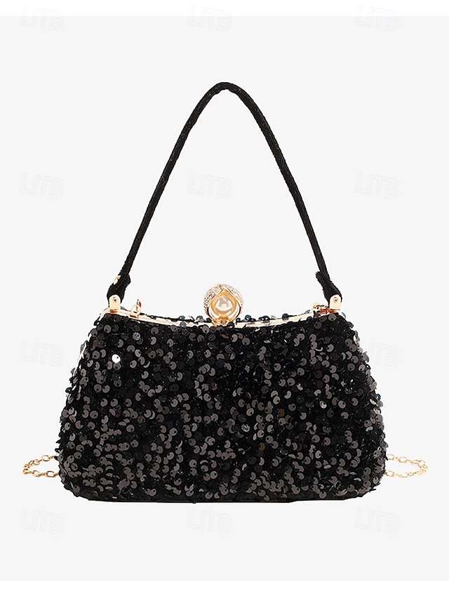 Gender: Women’s, Type: Evening Bag, Wristlet, Shoulder Bags, Material: Polyester, Embellishment: Sequin, Chain, Pattern: Solid Color, Detachable strap: Detachable, Adjustable strap: Non-Adjustable, Occasion: Party, Wedding Party, Width (cm): 8, Height (cm): 14, Length (cm): 22, Function: Large Capacity, Multi Carry, Category: Clutch,