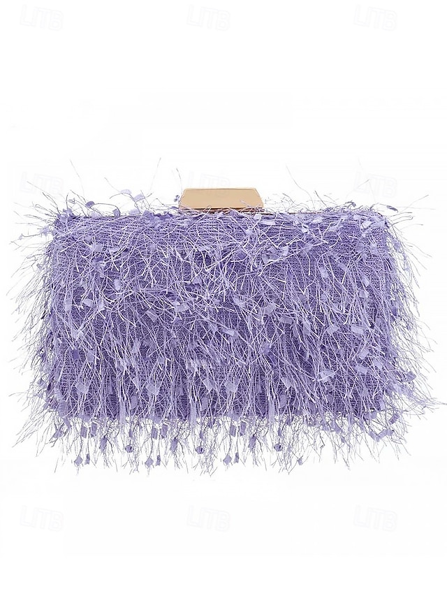 Women’s Chic Feathered Evening Clutch with Chain Strap,