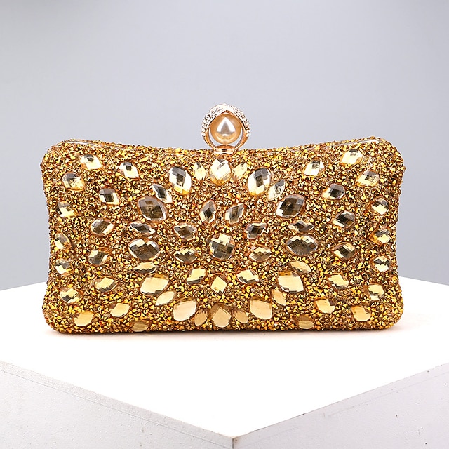 5PCS Elegant Crystal Evening Clutch with Gold Ring Handle –