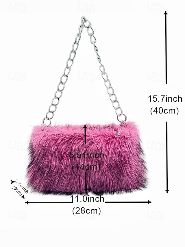 Gender: Women’s, Type: Wristlet, Shoulder Bags, Material: Polyester, Faux Fur, Embellishment: Chain, Pattern: Solid Color, Detachable strap: Detachable, Adjustable strap: Non-Adjustable, Occasion: Party, Valentine’s Day, Wedding Party, Width (cm): 28, Height (cm): 14, Length (cm): 9, Function: Multi Carry, Category: Evening Bag,