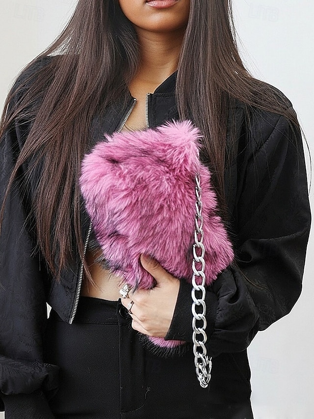 Women’s Faux Fur Chain Bag – Plush and Stylish with