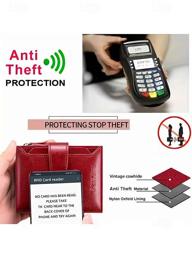 Women’s Vintage Red Leather RFID-Blocking Wallet –