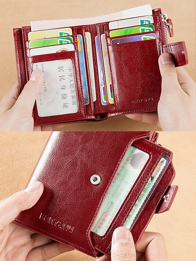 Gender: Women’s, Type: Credit Card Holder Wallet, Material: Leather, Embellishment: Zipper, Multiple pockets, Pattern: Solid Color, Adjustable strap: Non-Adjustable, Occasion: Shopping, Casual, Office, Mother’s Day, Width (cm): 9.5, Height (cm): 12.5, Length (cm): 2.5, Function: Large Capacity, Category: Wallet,