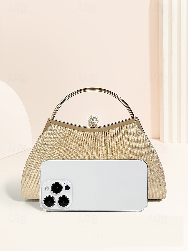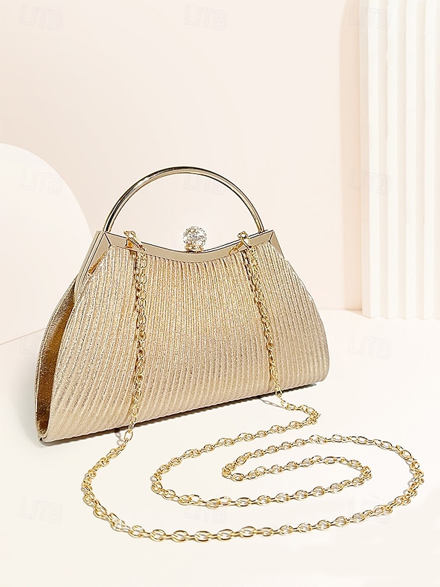 Gender: Women’s, Type: Shoulder Bags, Evening Bag, Wristlet, Material: Gretel Materials, PU Leather, Embellishment: Rhinestone, Wrinkles, Chain, Pattern: Solid Color, Detachable strap: Detachable, Adjustable strap: Non-Adjustable, Occasion: Wedding Party, Party, Width (cm): 5, Height (cm): 14, Length (cm): 24, Function: Large Capacity, Multi Carry, Category: Clutch,