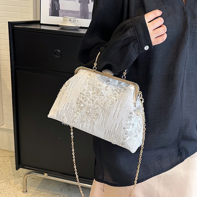 Gender: Women’s, Type: Dome Bag, Clutch Bags, Material: Synthetic, Embellishment: Sequin, Pattern: Geometric, Occasion: Bridal Shower, Wedding Party, Party, Width (cm): 7, Length (cm): 28, Height (cm): 18, Function: Foldable, Large Capacity, Category: Clutch, Handbag,