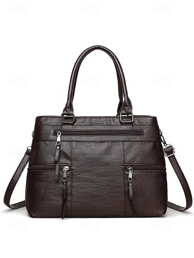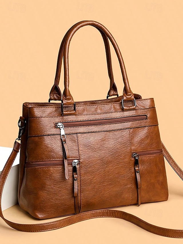 Women’s Large Faux Leather Shoulder Tote Bag with Multiple
