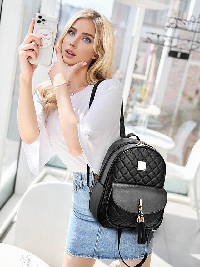 Gender: Women’s, Type: School Bag Bookbag, Material: PU Leather, Embellishment: Zipper, Pattern: Solid Color, Occasion: Daily, Width (cm): 25, Height (cm): 30, Function: Lightweight, Large Capacity, Category: Backpack,