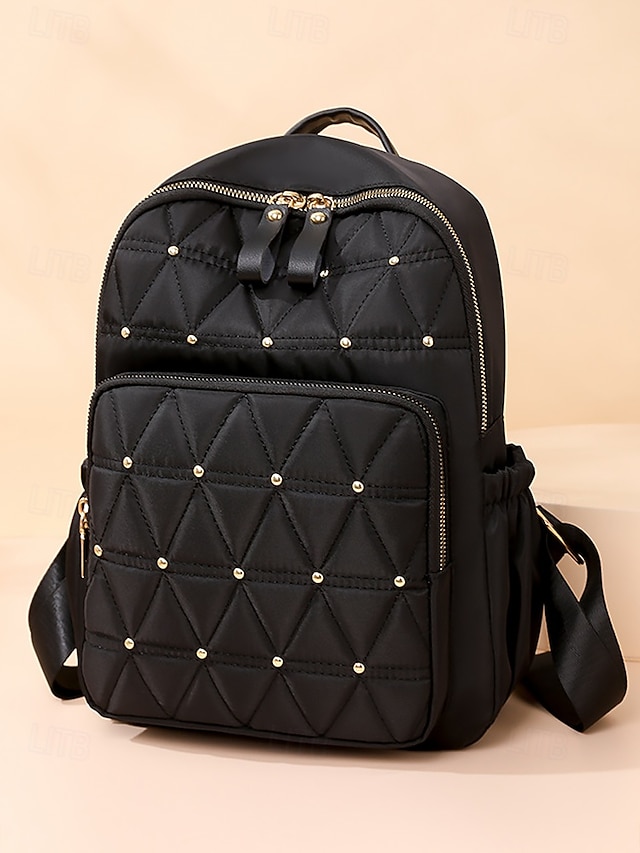 Gender: Women’s, Type: School Bag Bookbag, Commuter Backpack, School Backpack Bookbag, Material: Polyester, Nylon, Oxford Cloth, Embellishment: Rivet, Zipper, Pattern: Solid Color, Occasion: Daily, School, Width (cm): 26, Height (cm): 32, Length (cm): 14, Function: Waterproof, Lightweight, Large Capacity, Category: Backpack,