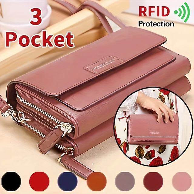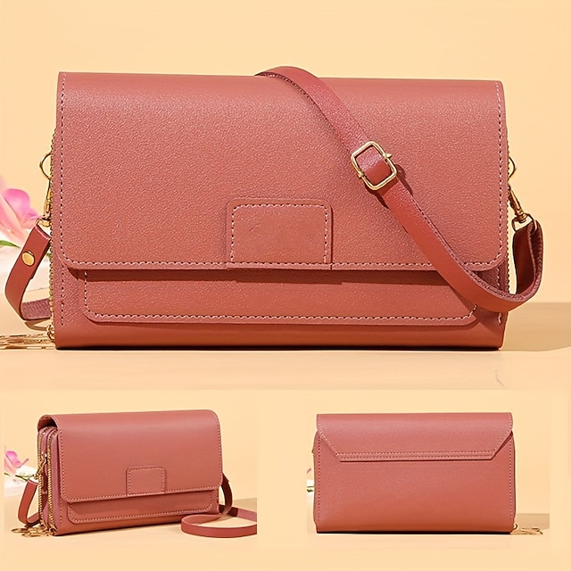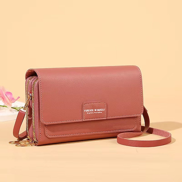 Gender: Women’s, Type: Mobile Phone Bag, Material: PU Leather, Embellishment: Zipper, Pattern: Letter, Solid Color, Occasion: Shopping, Daily, Office, Width (cm): 5, Length (cm): 19, Height (cm): 11, Function: Adjustable, Durable, Category: Shoulder Bag, Wallet, Crossbody Bag,