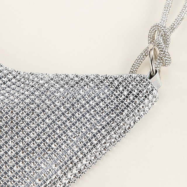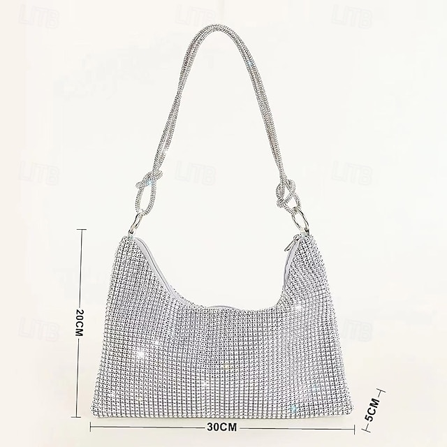 Women’s Silver Rhinestone Shoulder Bag – Sparkly Hobo