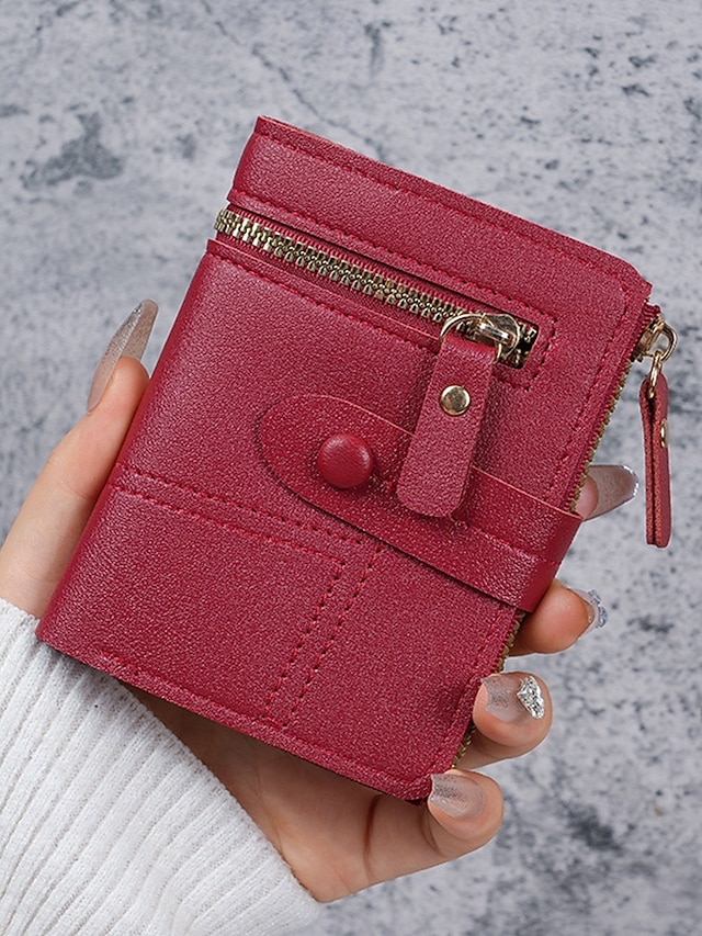 Gender: Women’s, Type: Credit Card Holder Wallet, Material: PU Leather, Embellishment: Zipper, Multiple pockets, Pattern: Solid Color, Adjustable strap: Non-Adjustable, Occasion: Shopping, Casual, Office, Width (cm): 9, Height (cm): 11.5, Length (cm): 0.6, Function: Large Capacity, Category: Wallet,