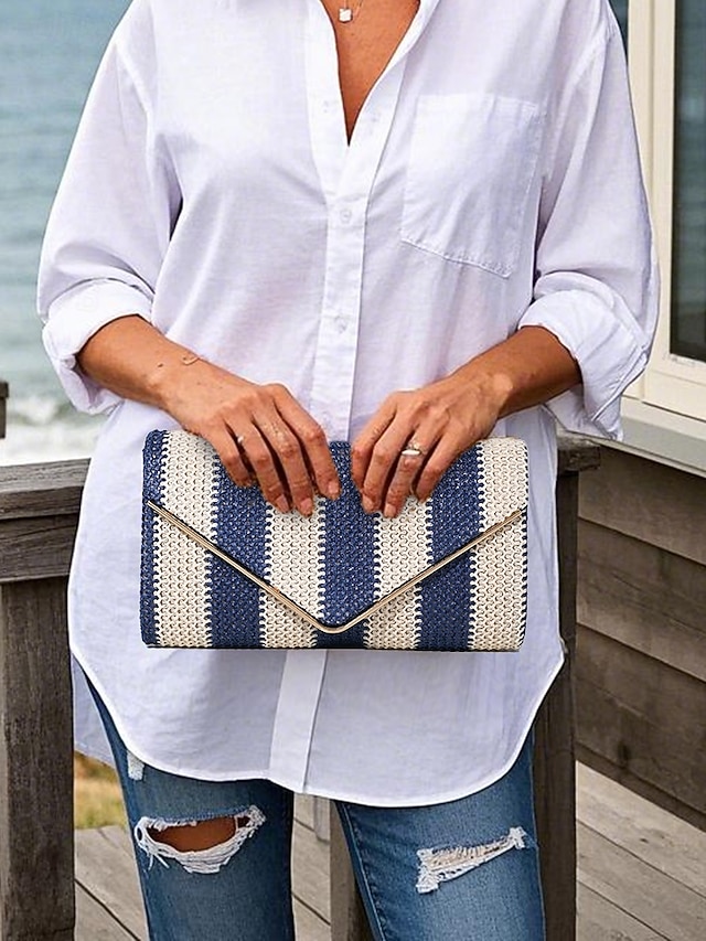 Gender: Women’s, Type: Crossbody Bag, Shoulder Bags, Material: Straw, PU Leather, Embellishment: Chain, Pattern: Striped, Detachable strap: Detachable, Adjustable strap: Non-Adjustable, Occasion: Beach, Casual Daily, Width (cm): 5, Height (cm): 12, Length (cm): 23, Function: Multi Carry, Category: Clutch,
