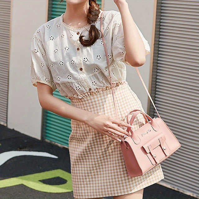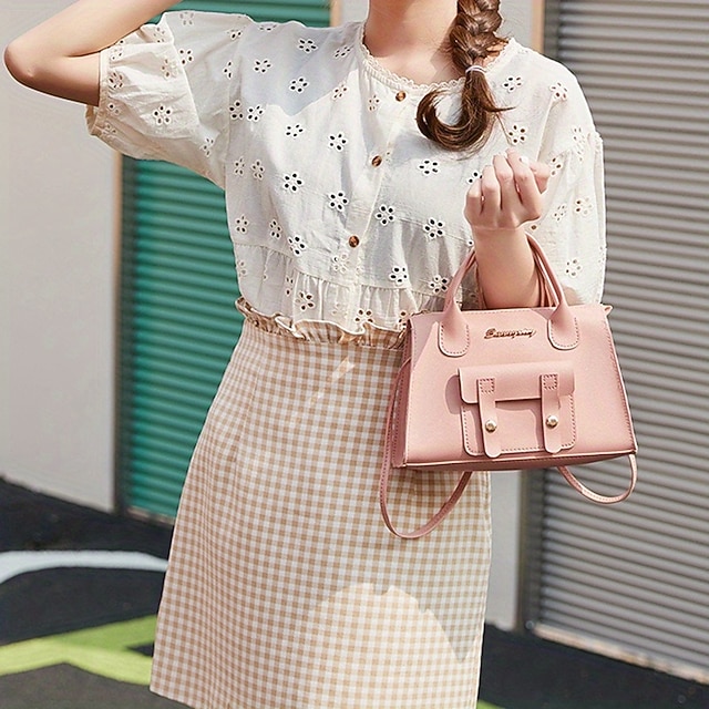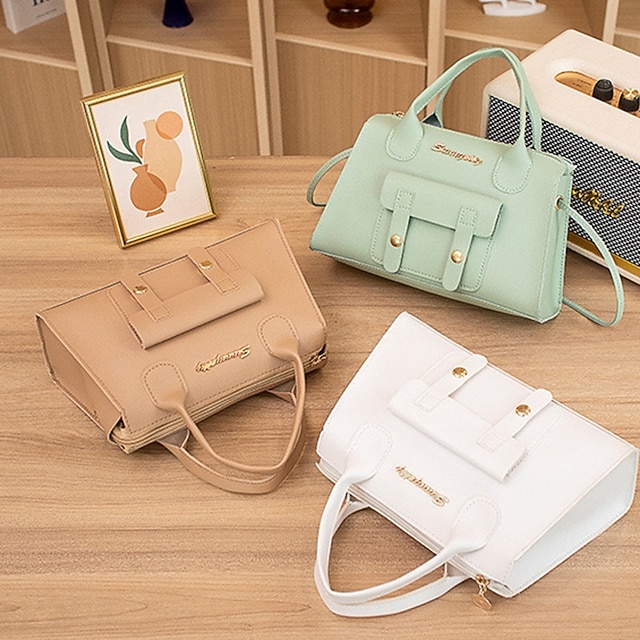 Women’s White Faux Leather Handbag with Top Handle and