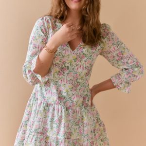 V Neck Floral Mini Swing Dress